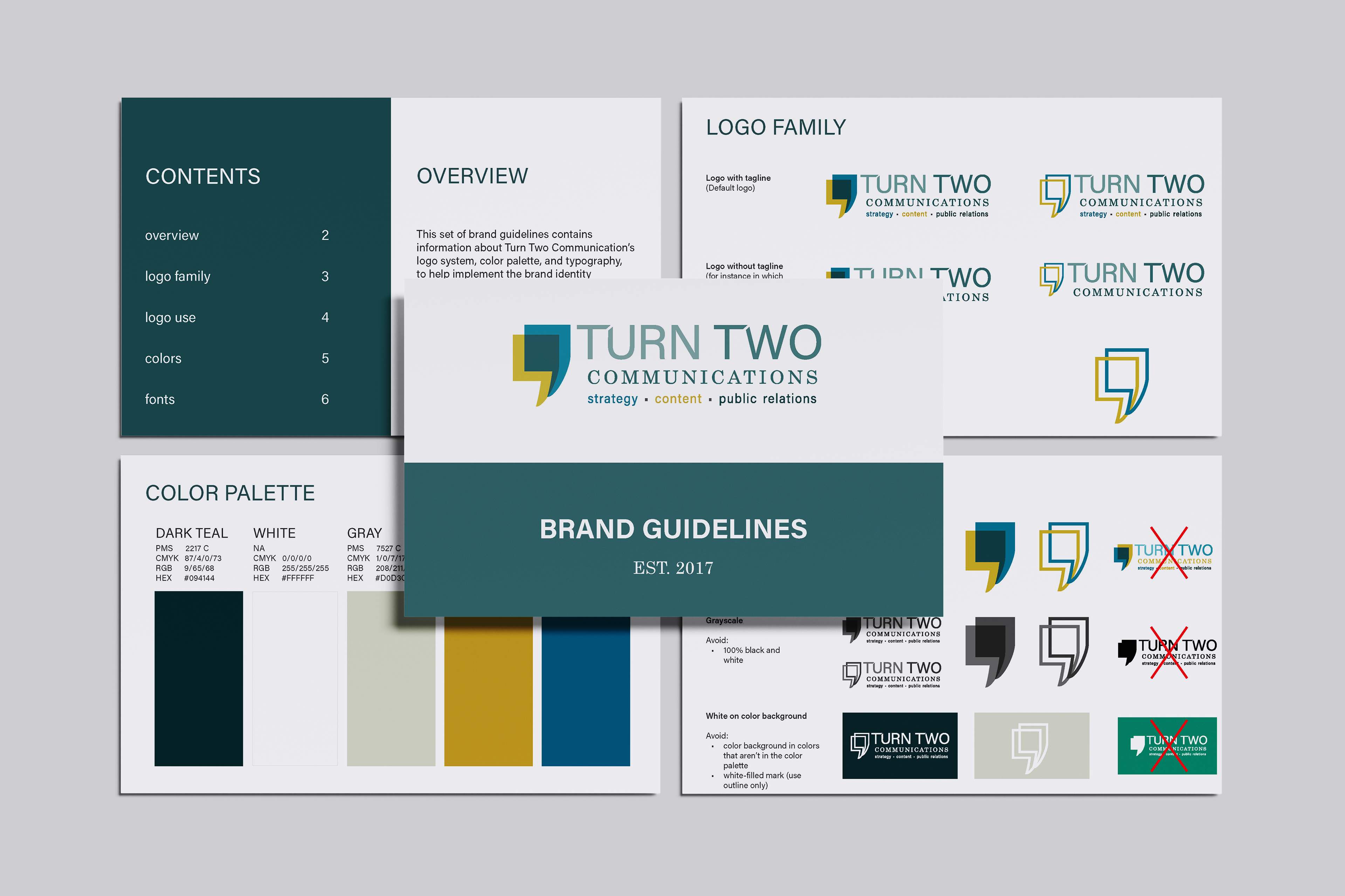 I worked with Turn Two Communications' founders to create the firm's brand identity for its launch in 2017. The brand identity was in use until 2024 when the company went through a rebrand.